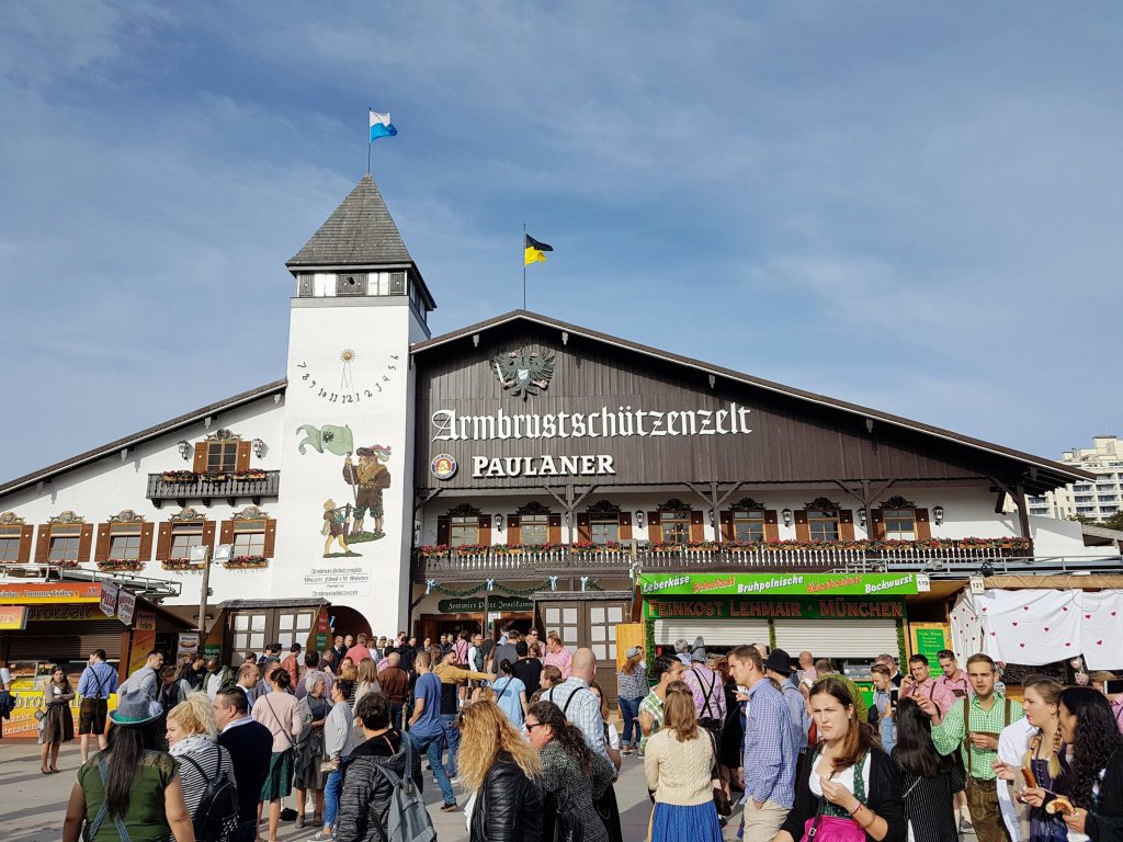 On Saturday morning, we had an 11:00 reservation at ArmbrustschΓΌtzen Festhalle, a Paulaner tent. We had the early shift which meant an agonizing wait of one hour before the taps were opened at noon. However, this gave me ample time to swap our table which was cramped in a corner with an annoying beam in our way to another table whose group was late showing up. Another itsabrewtifulworld word to the wise… don’t show up late!