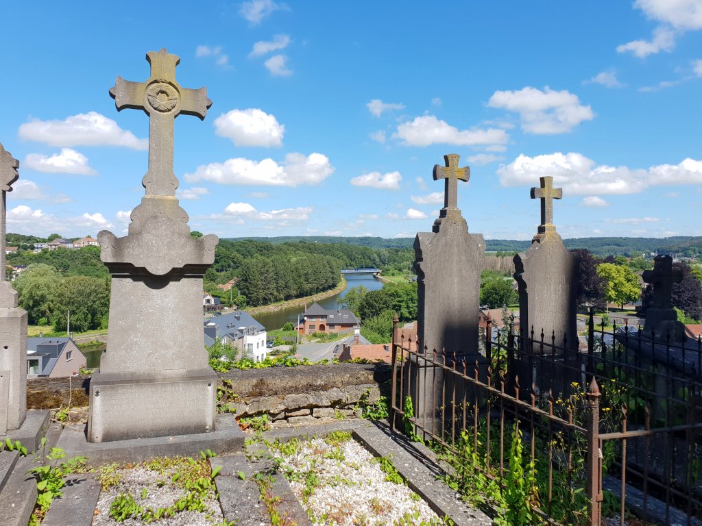 Before you actually embark out of the village of Floreffe, this route takes you up to the Eglise Notre Dame du Rosaire de Floreffe with a provocative cemetery and an interesting pair of urinals.