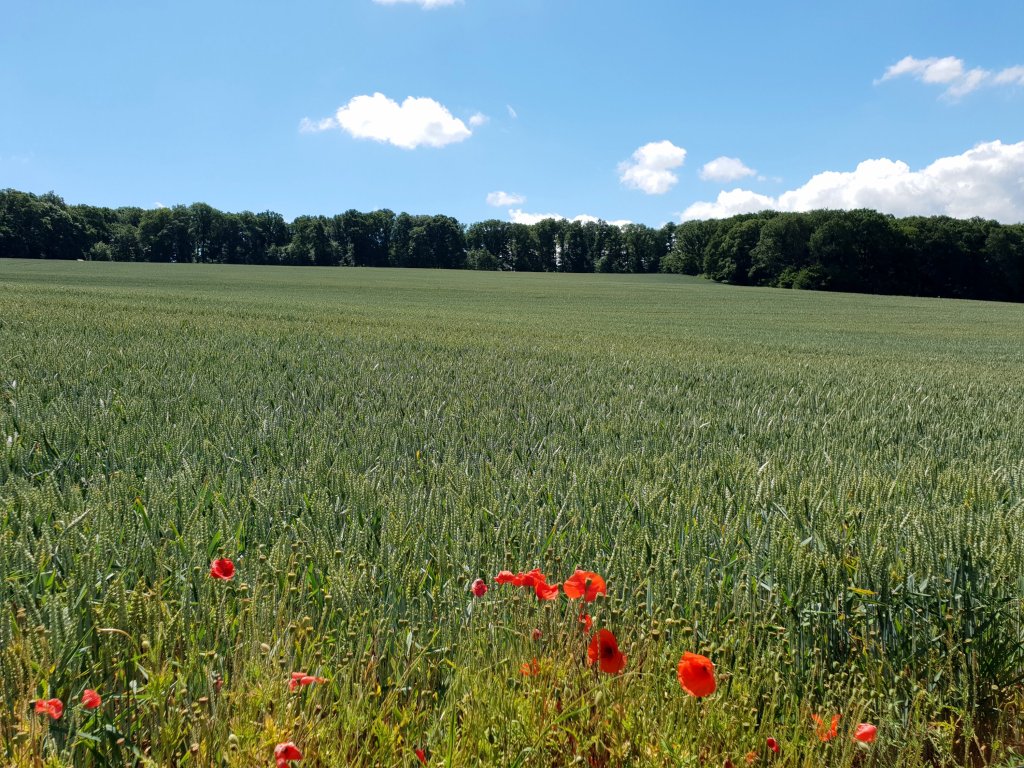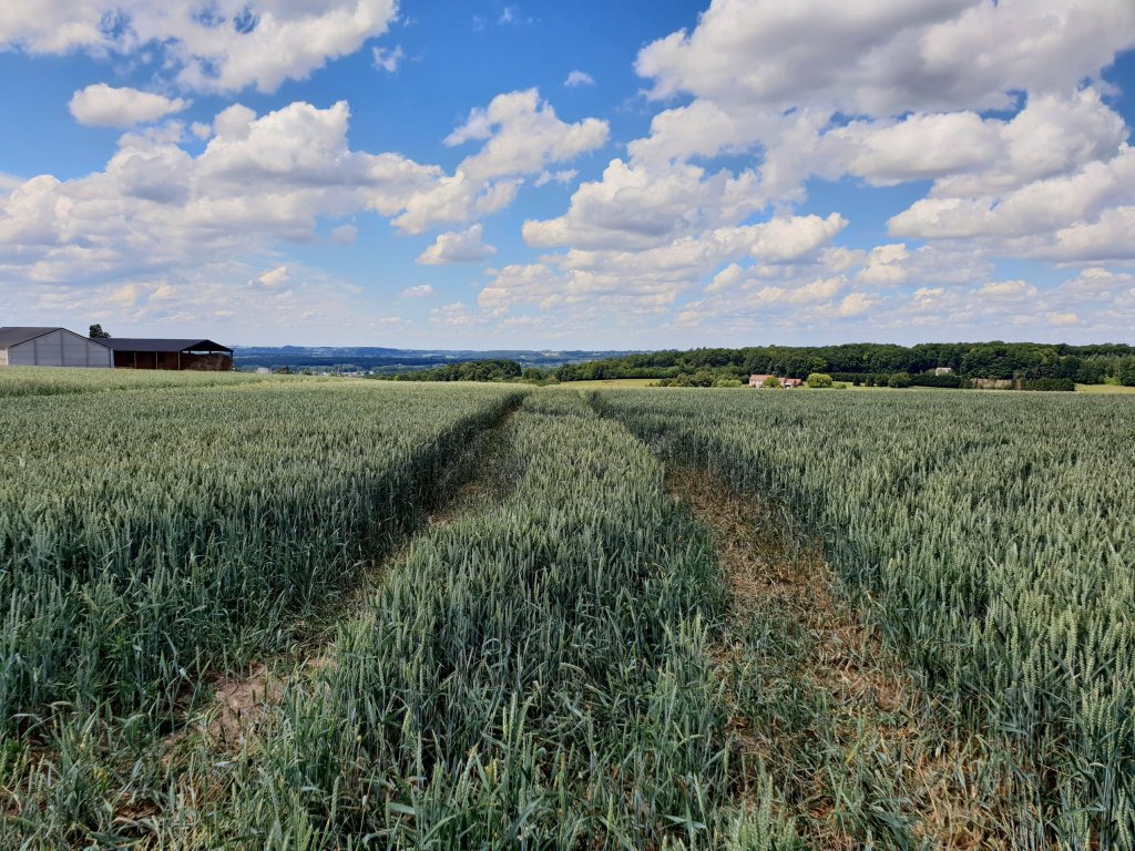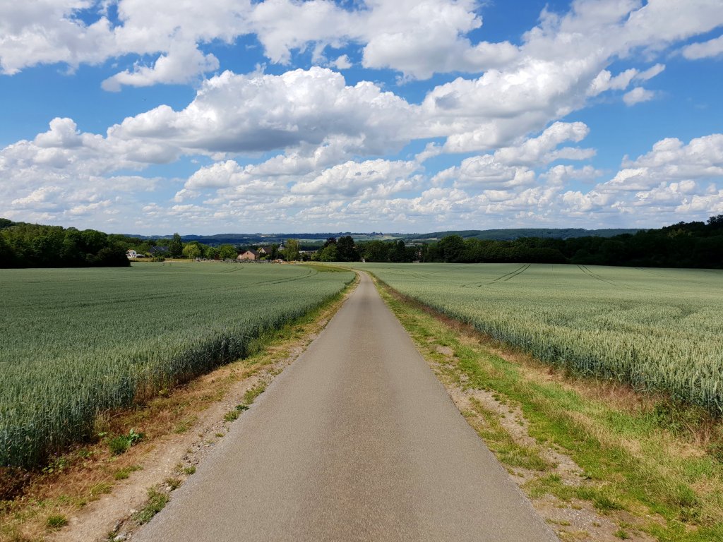 The first part of the hike takes you up on a plateau through some farmland in the direction of the village of Malonne. It is the tantalizing forest to the north (left of the image) of this route which is off limits.