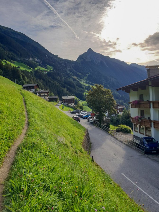 The best place to start the hike to the Kolm is from the namesake village, Brandberg, which involves a 15-minute steep winding road drive from Mayrhofen. There are a couple of places to park your car, but behind the church seemed a perfectly quaint start to the adventure.