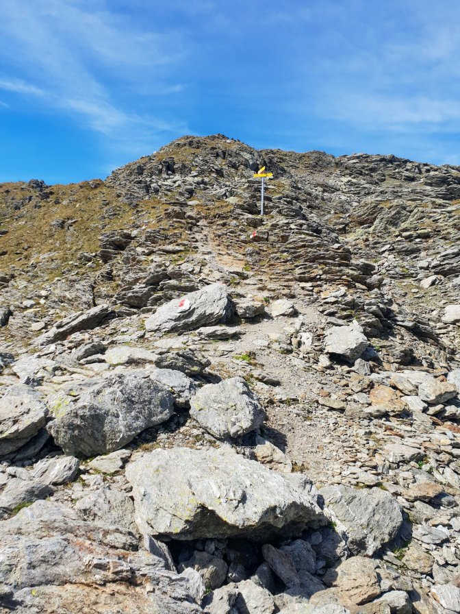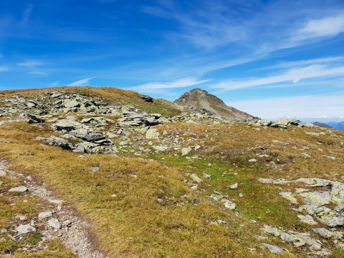 From the plateau, Wangelspitze looks like a peak, but when you reach it, you realize that it really is just a small crest. The landscape behind it in the direction of the Rastkogel is an enticing array of peaks and ridges . From Wangelspitze onwards though, this story becomes the tale of two hikes.
