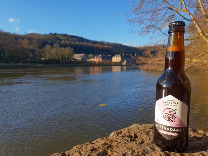 Falmignoul is the type of peaceful unassuming place that from the moment you arrive makes you wonder if there really is a virus out there rampaging the Earth. That is until you get to the front door of the only place in town, the Brasserie Caracole, and discover that even in out of the way places like Falmignoul, restrictions are restrictions. Fortunately I brought along my own bottle of Brasserie Caracole’s Nostradamus beer which I had purchased back home.