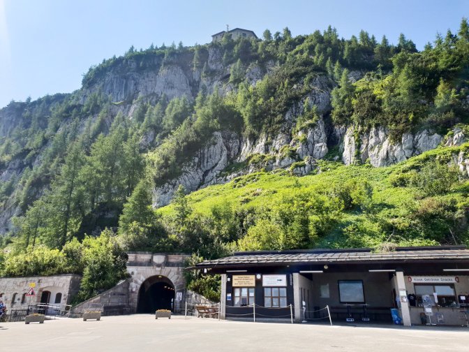 After braving the insect world, I finally arrived at the entrance to the elevator shaft which Hitler and others used to reach the Kehlsteinhaus. This is also where the busses turn around. I, however, preferred to take the winding path.
