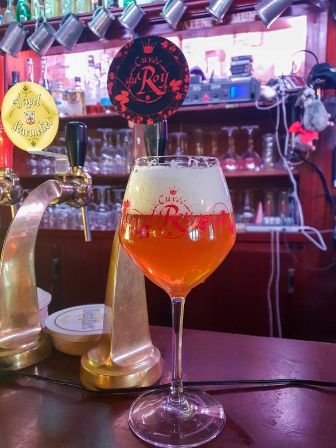 After a 10 mile hike, it was time for some beer. I didn’t find any breweries in the city center but the coolest place to enjoy a beer seemed to be the Du Roy de la Biere. Here you can sample the Cuvee du Roy house beer.