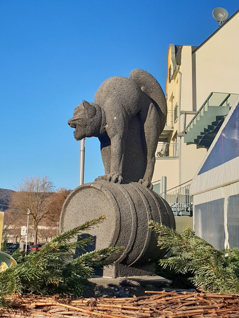 The black cat climbed onto one of the barrels and hissed like a good black cat should. The buzzed wine merchants took this as a sign and chose that barrel. The people of Zell celebrated and wine from the area became associated with the Zeller Schwarze Katz. A legend was born and Zell wine had a face. Meanwhile, somewhere in the US South, a black cannonball hissed thru the air… dozens of shrapnel pieces still intact, just seconds away from fulfilling their limb-shredding purpose. Today the US Civil War is in history’s rearview mirror (even if it’s social implications unfortunately are not), but 1863’s other offspring, Zell’s Schwarze Katz is still very much thriving as the main driver of the town’s tourism. The symbolism is everywhere.