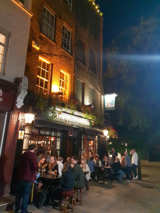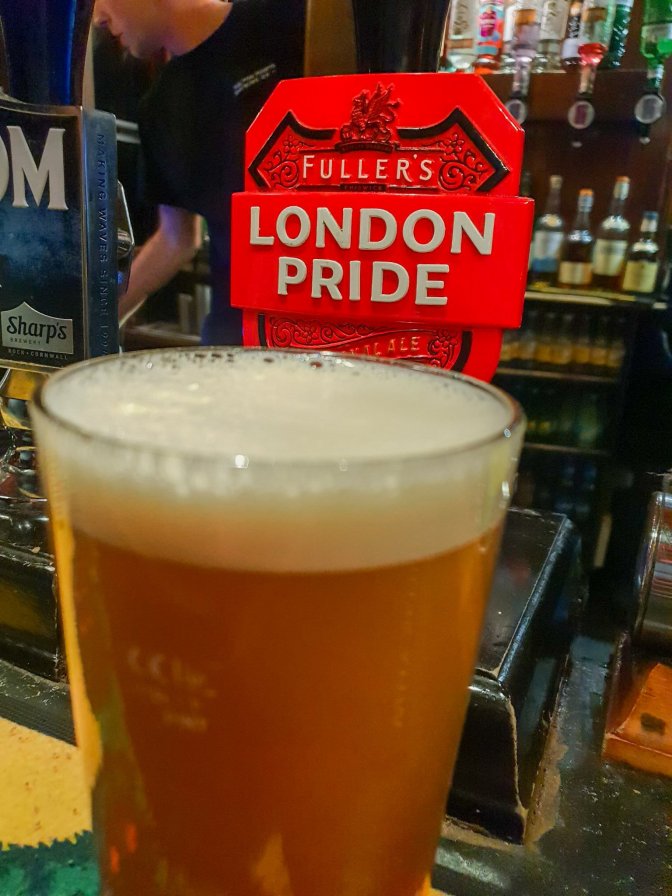 Located on the hidden Queen Square Gardens, tucked away off Russell Square, this pub defines the word ‘cozy’ and for me was easily my favorite of the evening. The name comes from the food cellar of Queen Charlotte which was located here while her husband King George III was in the neighborhood getting treatment for his mental illness3. The only Dickens link is very tenuous at best. George III happened to be king when Dickens was born but died when he was eight years old. No special beers here so it was a good opportunity to toast my first evening in London with a London Pride.