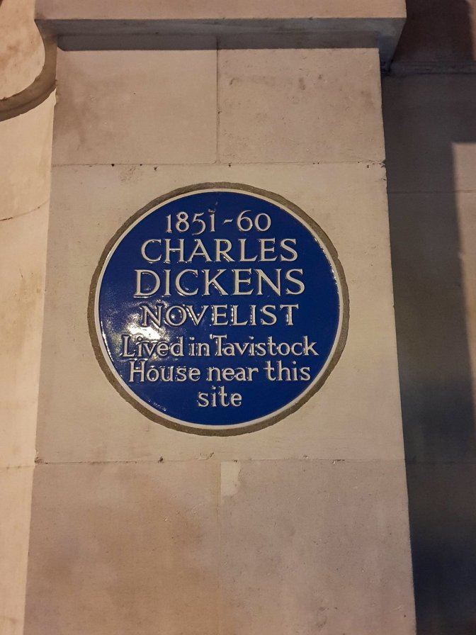 Dickens lived in Tavistock House from 1851-1860 as noted in the plaque. The above quote actually comes from Robert Louis Stevenson who visited Dickens in 1857.