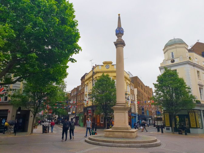 The Seven Dials neighborhood was a notorious slum back in Dickens’ time. While it doesn’t appear to be used in any of his stories, it seems to have fascinated him and was mentioned in other writings.