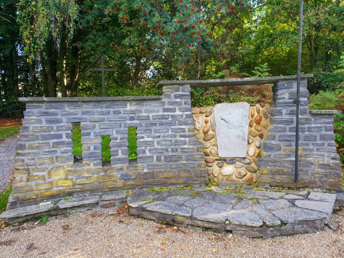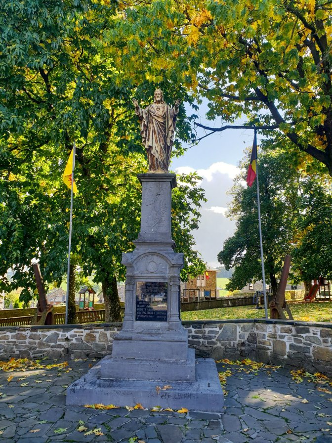 After Ennal and heading back to the starting point, the hike follows along an elevated ridge which was one of the nicest parts of the hike. At the end, across from the brewery is Rochelinval’s war memorial.