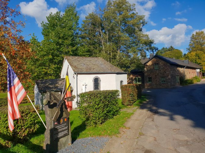 Rochelinval, the hike’s starting and ending point, years before the Battle of the Bulge, was the site of a battle in May 1940 where the Belgian Army attempted to stop the Germans during their original invasion of Belgium. Later, during the Battle of the Bulge, American paratroopers blew up a bridge here, to prevent re-inforcements from reaching Peiper.