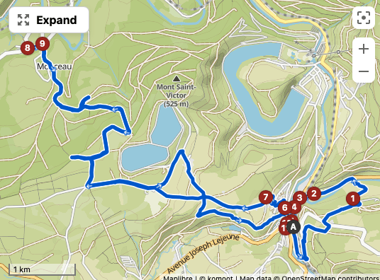 The hike then passes back through Trois-Ponts. For beer lovers, I strongly recommend to stop into Au Petit Lou, a shop selling local products. They have a fine selection of local beers. I picked up a bottle of La Vieux Pont which I carried with me on the hike for the featured photo.