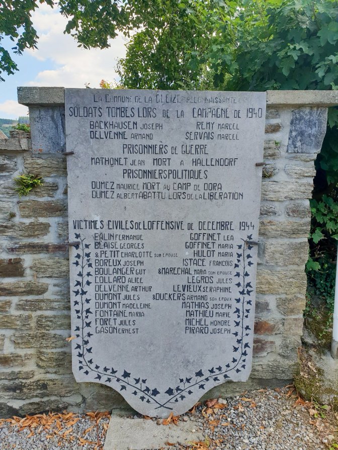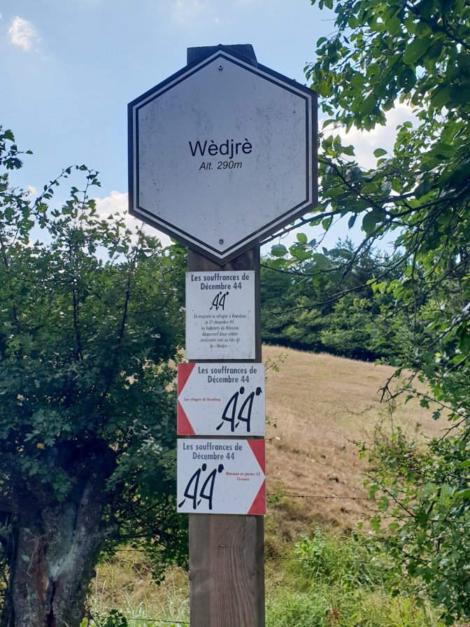 Along the road down thru the small village of Monceau towards Cheneux, there are signs referring to this way as Les Souffrances de Decembre 44 (The Sufferings of December 44), memorializing the evacuation route taken by civilians.
