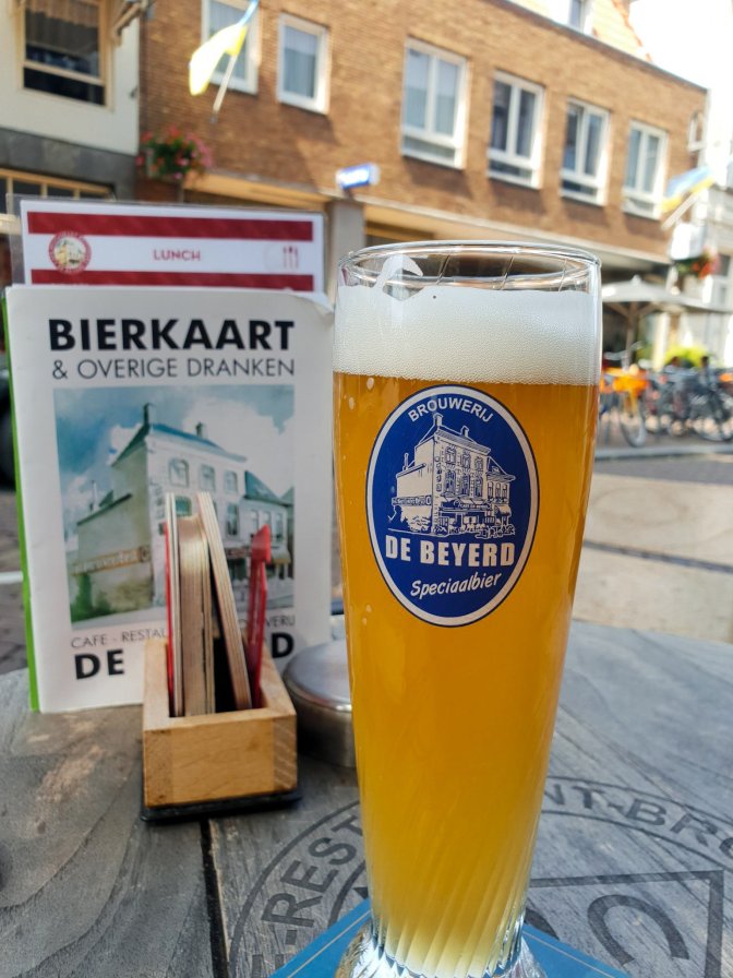 The Cafe de Beyerd is a historic cafe in Breda. While the name is similar to the Beiaard in Ros Beiaard, the magical horse’s name in The Four Sons of Aymon story, there seems to be no relationship there although the original emblem of the pub is three horseshoes (3 Hoefijzers). This is a great pub popular with locals and cyclists. It is also a microbrewery with several varieties to choose from. I indulged in the Speciaal Tripel.
