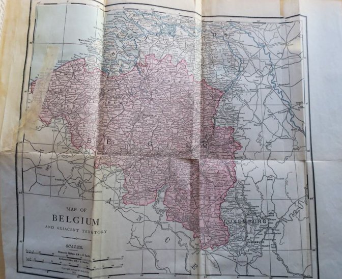 This is a gem of a classic travel book written by the wife of an American diplomat recounting her experiences during their stay in Belgium from November 1911 until November 1912. This is full of personal observations of life in Belgium, local customs, legends, and history. She really took every opportunity to explore and research with bottomless curiousity. The chapter on “motoring” around Flanders as they would say back then is a real highlight, as is the chapter “Legends of Antwerp” which is actually an English translation of a work written by a Flemish historian named Sleeckx some fifty years earlier found in the library of Antwerp. There are several wonderful illustrations giving postcard-like views of how Belgium looked prior to WWI. Also included is a delicate map of Belgium. The book ends with an update concerning the war which was ongoing at the time of publishing where she discusses the relief effort that she was participating in.