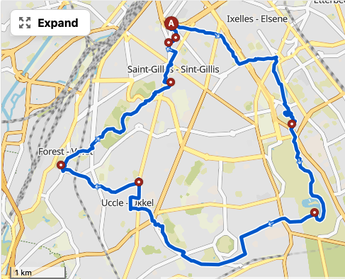 18.3 km round-trip from the Porte de Hal in Saint-Gilles.