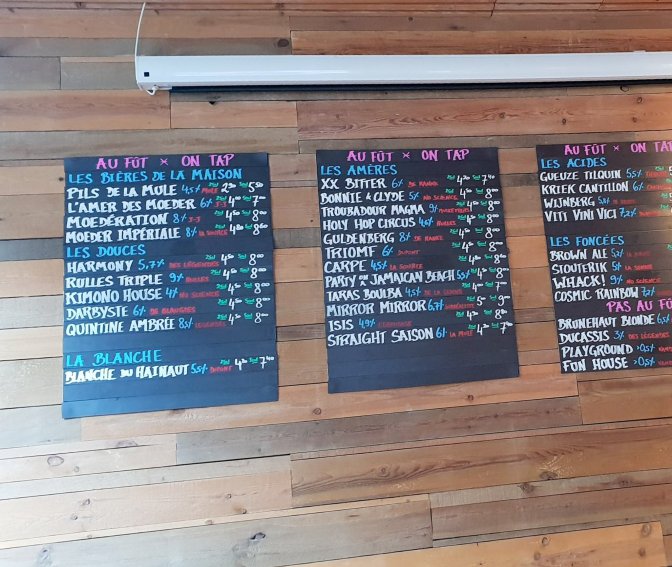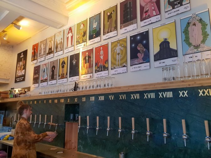 The original Moeder Lambic (as opposed to the offshoot located in Brussels center labelled “Fontaines“) is a craft beer bar with a few outdoor tables, an indoor seating area and a cozy cellar. Of main interest for me were the selection of house (de la maison) beers.