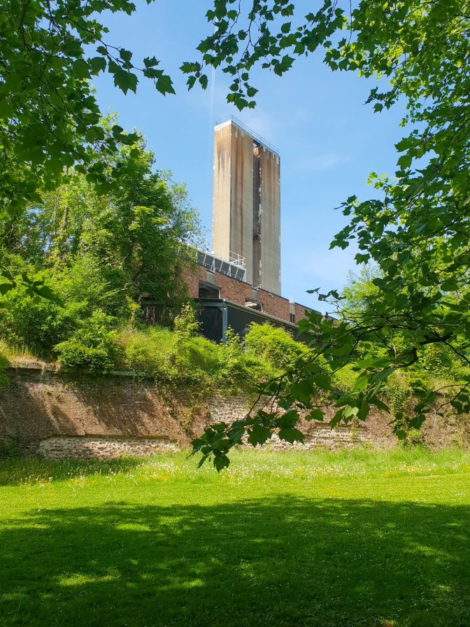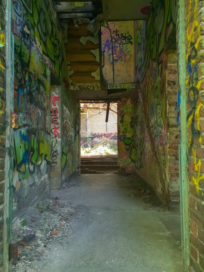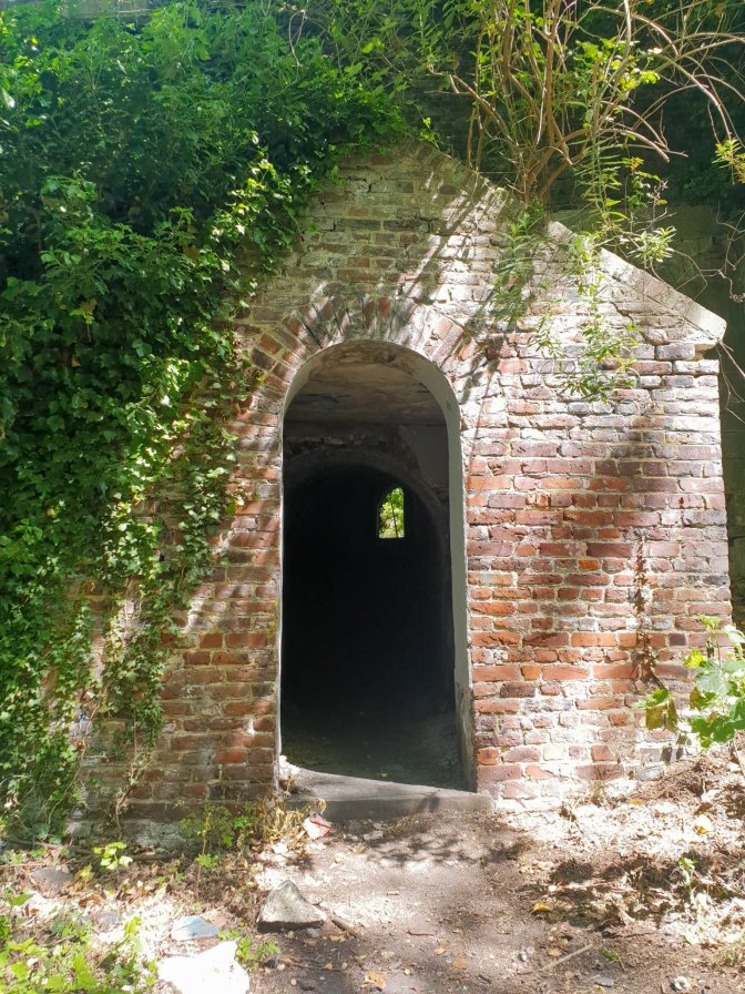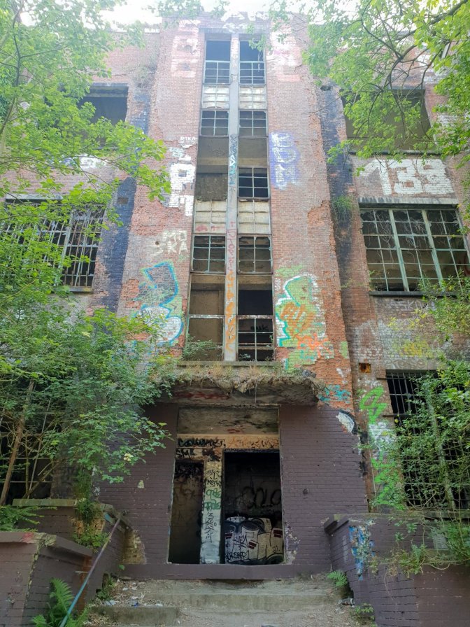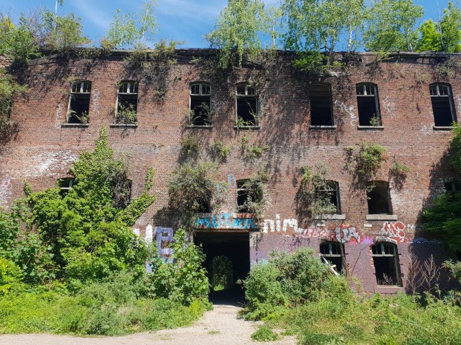 There is nothing left of the days when Jupille was the seat of the Franks, and the brewery is a huge monstrous industrial complex not inviting for walk-in visitors, so I headed back to Liege thru the gloomy corridor of slaughterhouses. Between the Fort de la Chartreuse and the Liege abattoirs, there is a lot of horror movie vibes on this hike. The slaughterhouses looked like they might still be in business, but the surrounding businesses that once might have supported the workers all were abandoned and in ruin, adding to the overall creepiness. Thank goodness for the sunny day.