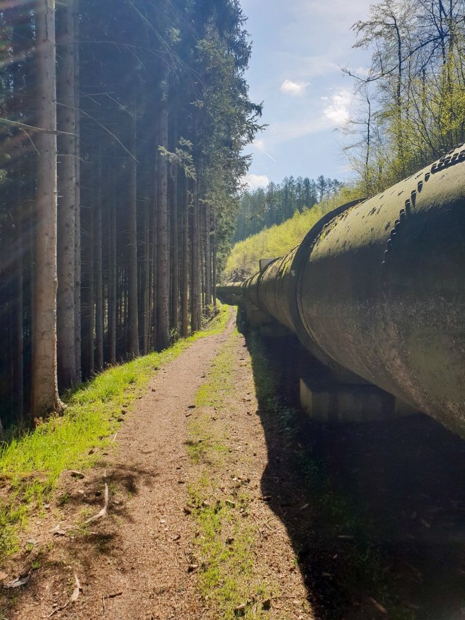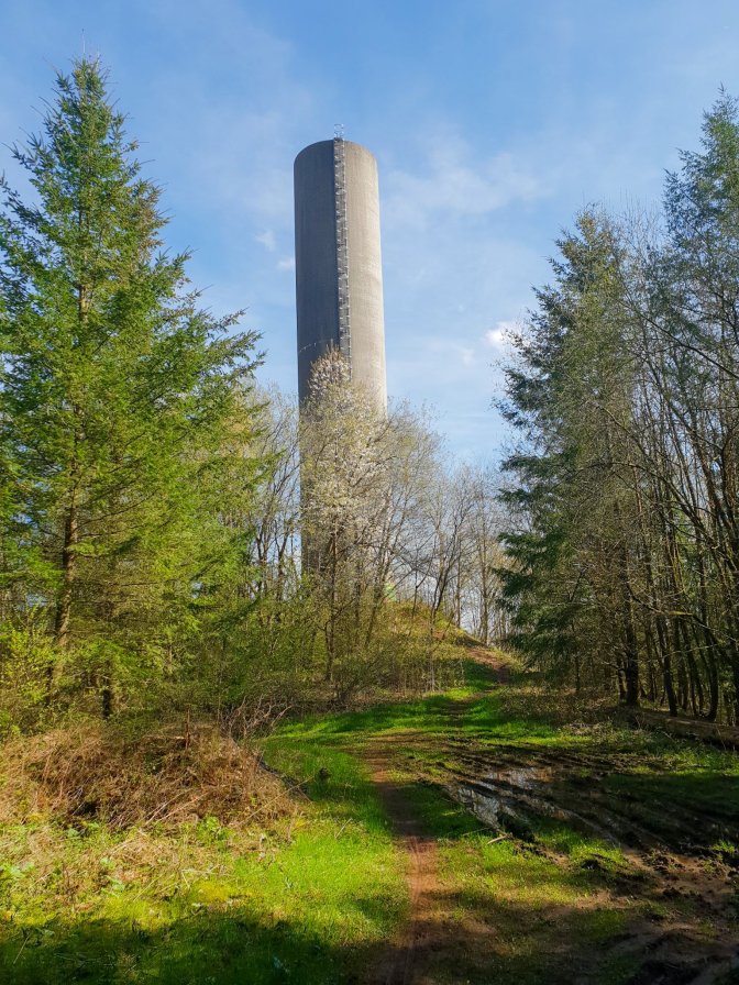 At the top is this tower and for a brief moment, the hike follows the massive pipe coming from it.