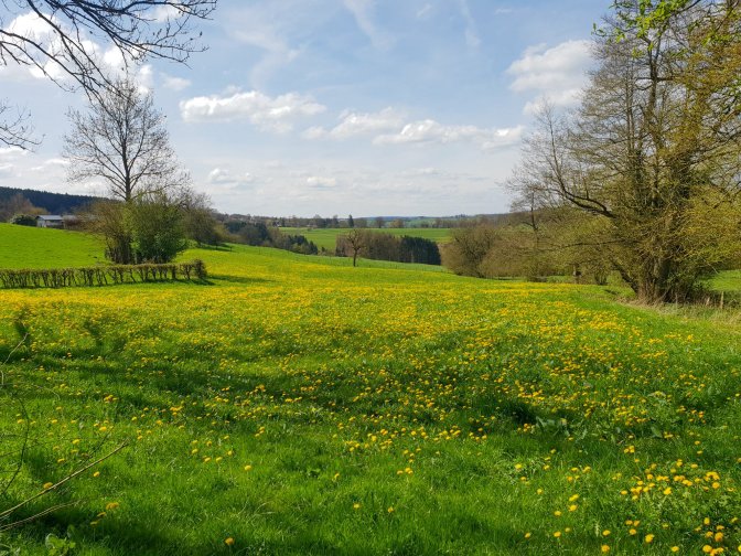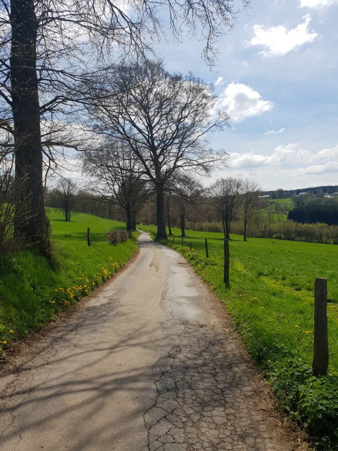This was called the Malmedy Massacre, and I planned a hike between the city of Malmedy which bears the massacre’s name and the place it actually occurred, Baugnez. Rather than follow the busy road that still links the two, this hike will follow a circuit route through the beautiful countryside which was still experiencing the harsh contrast between the glorious rebirth yet bare-tree stage of Spring that occurs at the end of April.