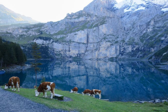 Pictures could never do justice to the beauty of the Oeschinensee. In the early morning, the water was near a perfect reflection.