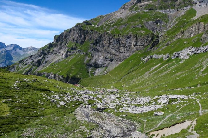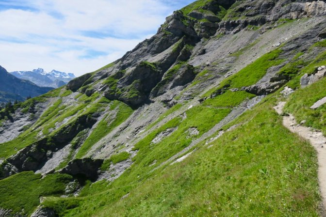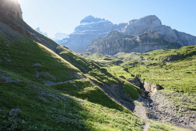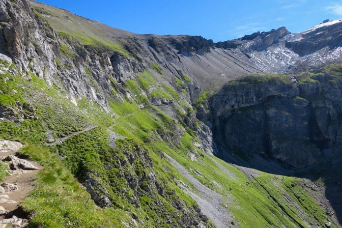 This was one of my favorite parts of the hike. The trail past the lake ascends up to Underbärgli and then follows a zig zag up to Oberbärgli. Both have a chalet with food and drink. You could already feel that this was going to be something special.