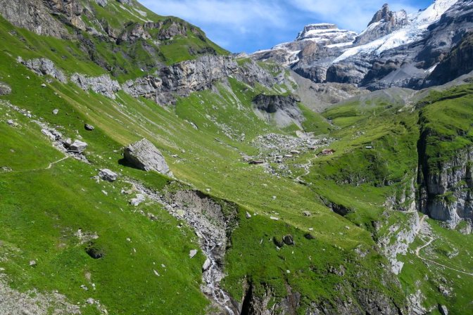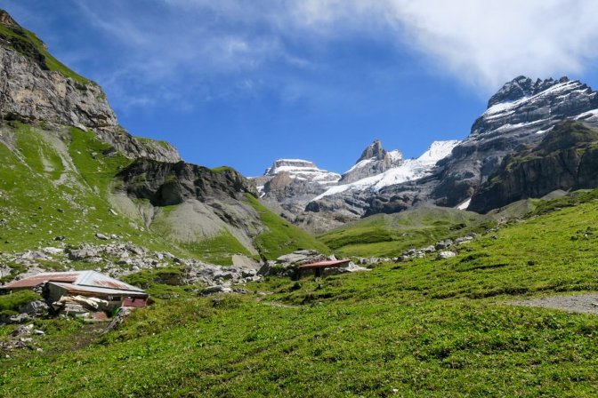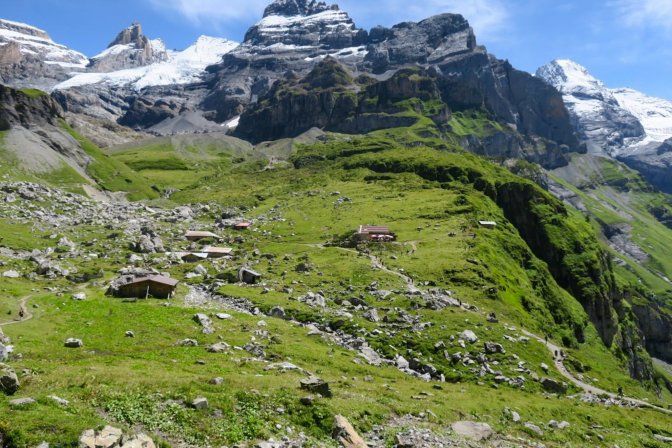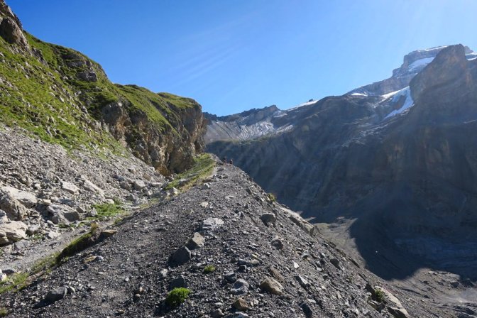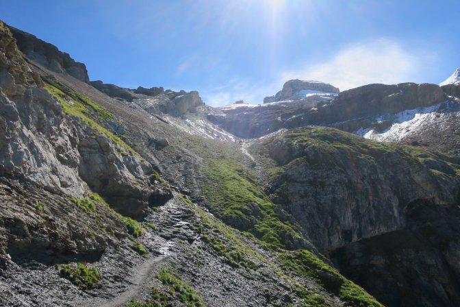 Oberbärgli separates the casual hikers from the serious hikers. The casual hiker will reach this point and loop back towards the cable car station. But this hike was heading to Blüemlisalphütte. The sun was high in the sky and beckoning me onward. By this point, the ascent was already 800m; more than the previous two days. There was still 800m elevation change to go, and this was going to be the real test. These are the glamour shots, but this was some slow, steep uphill hiking.
