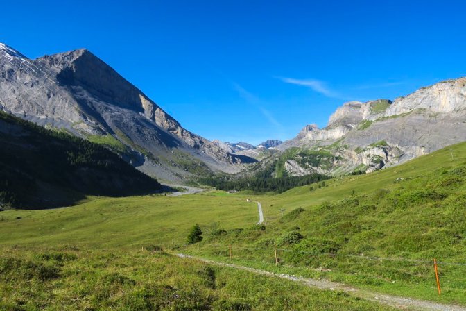At some point you have to turn right which takes you deeper into the mountains or left which brings you out to the Daubensee.