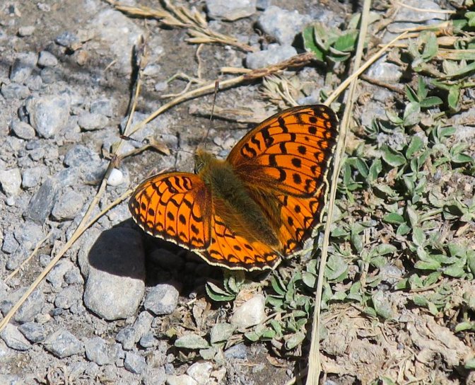From the moment I saw this view, I knew this was going to be my favorite part of hike. It was overflowing with nature. Butterflies, especially the Dark Green Fritillary (looking not so dark green but named for the color on the other side of their wings) were fluttering everywhere and occasionally I caught glimpses of marmots dashing into their hidey-holes. Otherwise, I had this route all to myself.