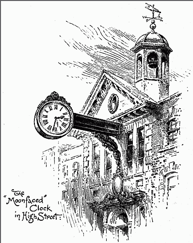 1. “It is oddly garnished with a queer old clock that projects over the pavement out of a grave, red-brick building, as if Time carried on business and hung out this sign.”