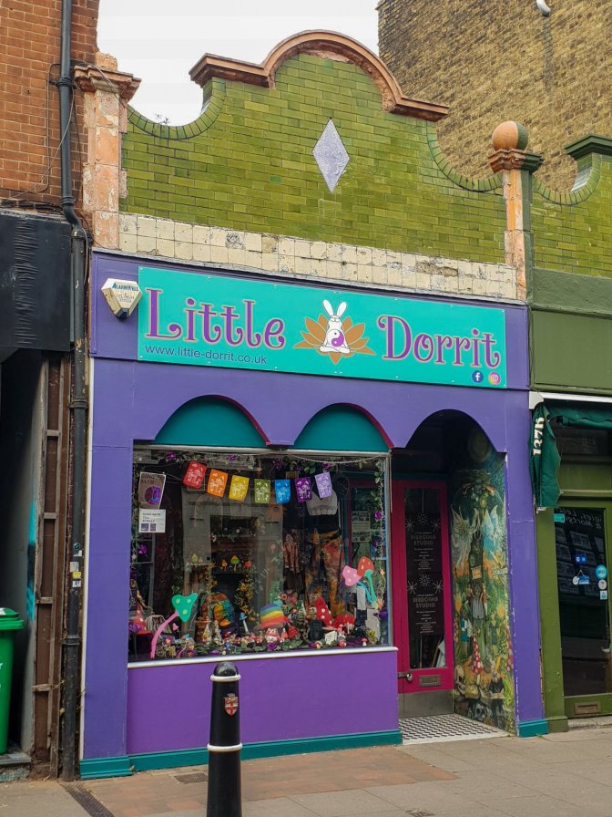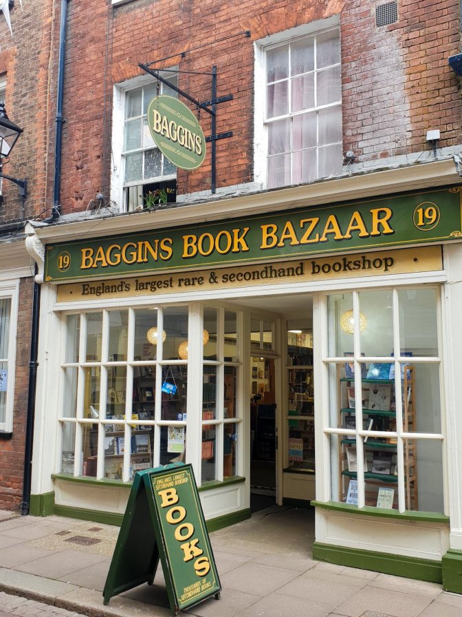 Today the façades are mostly brick-face such as this wonderful book store, daringly defiant by being named after a Tolkien character rather than fitting in with the Dickens theme.