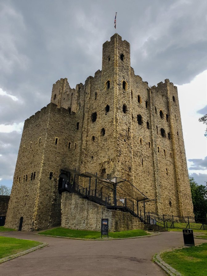 Rochester Castle is a solitary tower remaining from a larger castle complex. It’s square shape is typical of Norman architecture of the 11th century. Dover Castle and the White Tower of the Tower or London are other well-known examples.