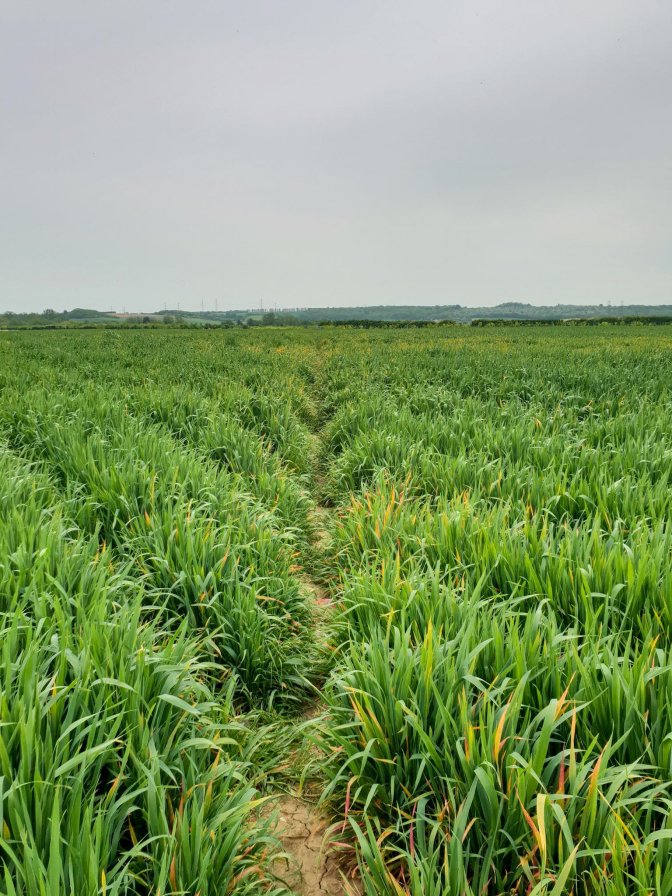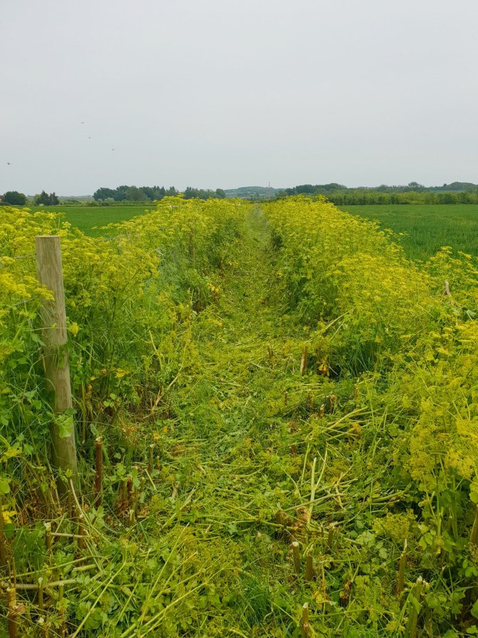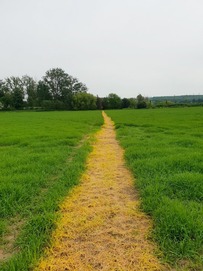 In one field, a farmer painted the public footpath a bright yellow rather than killing the grass outright.