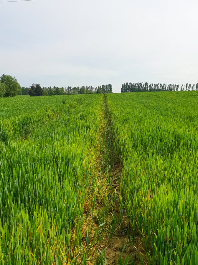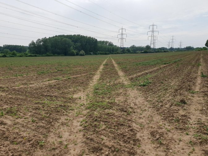 This public footpath is identified by the treadmarks of a tractor. I would imagine its clarity depends on the time of year.