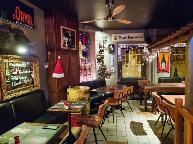 I have to give a shout out to this pub near Bastogne’s main church. Frankly, it is not a pub whose outward appearance and name would normally draw my interest. However, they were one of the few places open on Christmas night, so I gave them a try. Inside, the pub is much more charming, and they were serving St. Feuillien’s Christmas beer. A fine quality pub.
