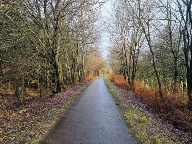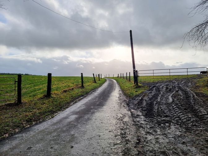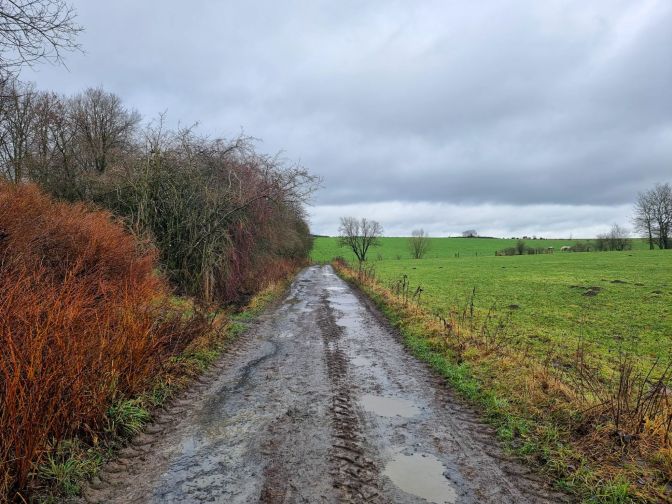 The hike follows a muddy farm road before being relieved by a Ravel (similar to what Americans know as Rails-to-Trails).