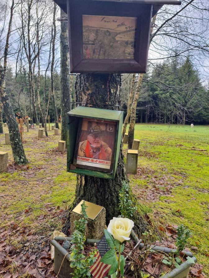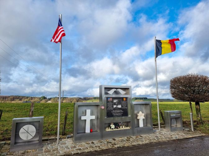 Robert Merriam was part of a special team of historians who worked for the War Department in order to make sure that the historical record of the war was properly and evenly recorded, warts and all. Naturally, they were received with some suspicion. When your job and duty are to kill other human beings, you want to be cast in the best light possible. The American public latched onto Bastogne, because they were fed “line after line of newsprint” about the “bravery of our boys in Bastogne”2. Bastogne accounted for about 3000 out of 80000 American casualties in the Battle of the Bulge. Merriam seemed to be trying to caution us already within a couple years after the war ended not to forget or dismiss the other 77000. The Band of Brothers are now pop culture, even among non-Americans. I admit when I walked through the forests around Bastogne or when I passed through the village of Foy, I was thinking of that show and connecting it to the experience. Yet recalling Merriam’s words and witnessing the way the memorial of a nurse in the 107th was the most decorated memorial in the Bois de la Paix, it reminds me to broaden my reflections and appreciate the legacies that carry on today by some unseen benefactors who have thought to put flowers next to Lt. Ruth Puryear’s stone in this quiet far corner of Belgium. Bastogne will always pass through my consciousness as a road sign, but in reality it is people, voices, stories, and histories that continue on in lives that have been touched by the sacrifices that were made and that captivate people like myself to come and seek them out.