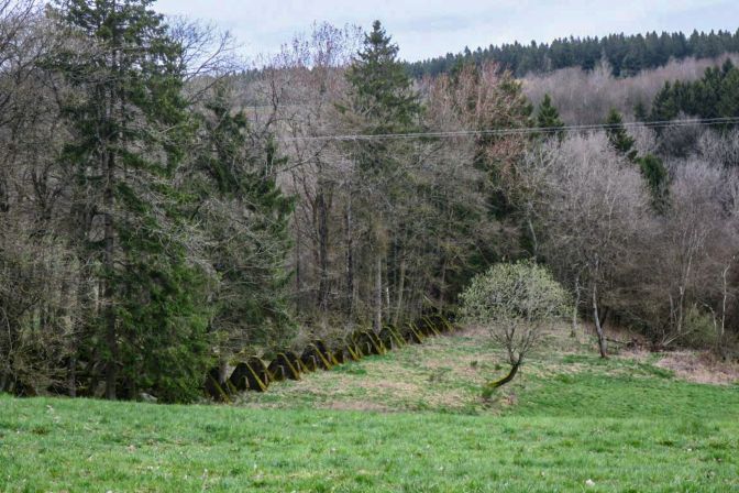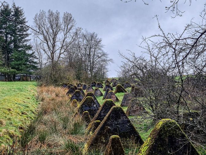 By the time I was back in Udenbreth, the rain had started to wane. Approaching Udenbreth from the west revealed the Dragon Teeth that still protect the village from the ghosts of Sherman tanks.
