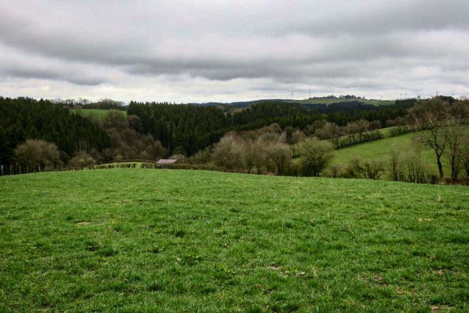 I stepped out of my Airbnb under an ominous sky in the tiny hamlet of Udenbreth in the far west of Germany near the border with Belgium. It was March 29, and Spring was still hardly recognizable after weeks of relentless rain and clouds. It was dry at the moment, but I was not optimistic. The rolling hills of the Eifel tried their best to look lush in constrast to the grey hues of the sky. Udenbreth seemed to be only a few houses and some farmland. One quiet building with a beer sign offered no encouragement for a refreshment later. It was probably an inn only open during high season, but even then it was hard to imagine seeing any life there. It haunted the cool morning air like a ghost town. That was until my otherworldly ponderings were interrupted by a distant sound like the clopping of wood mallets which approached from the end of the street. It was a group a children holding what looked like a wooden toy. It had a handle with an attached plate and a small hammer which flip-flopped back and forth against the plate as they shook the device. The group of children walked by me smiling, making a lot of noise with this curious toy. They continued on past me as if their job was to wake up every resident in this small town. A couple days later I would come to find out that local churches send all of their bells to Rome to get filled with chocolate during Easter. The wooden toy is a temporary replacement for these bells while they wait for them to be returned. As I reached the edge of some farmland, the clamor of the children faded behind me.