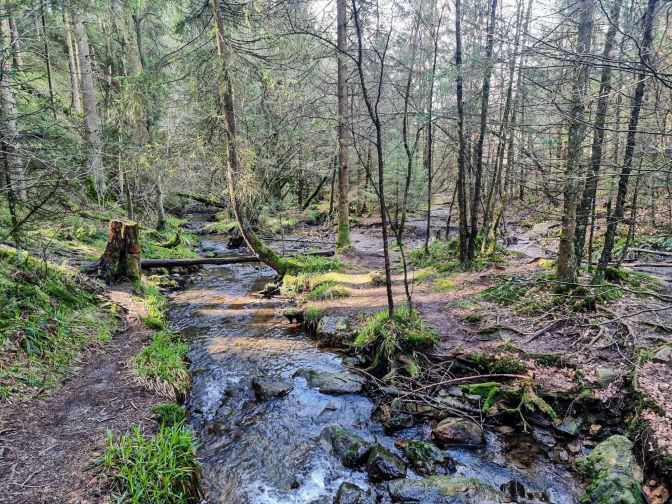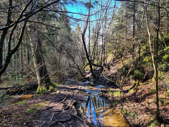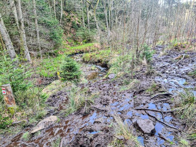 The trail then follows a stream, and after several weeks of consistant rain, this part of the trail was a complete trudge. A good pair of waterproof hiking shoes is a must here.
