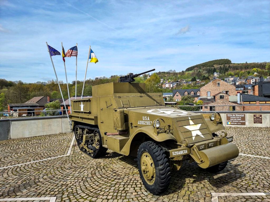 On the morning of December 18, 1944, a patrol of the US 526th Armored Infantry rode several of these half-tracks up the hill on the southern side of the bridge. They were completely unaware that they were about to ride headlong into Kampfgruppe Peiper fresh off the events of the Malmedy Massacre. All of the half-tracks were destroyed but some soldiers survived and made it back to Stavelot.2