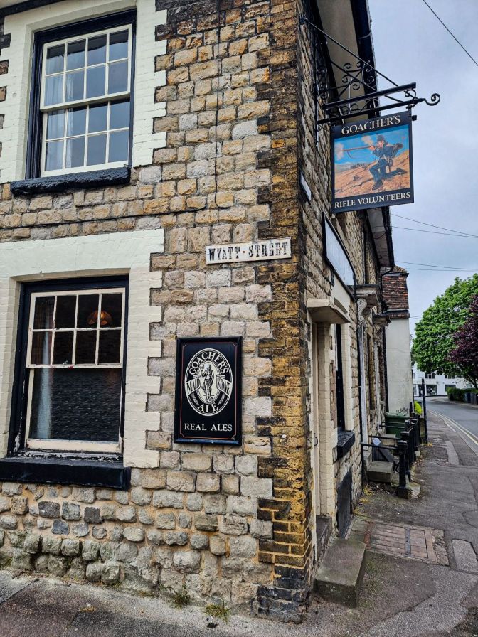 Rifle Volunteers were groups of part-time militias which became common in Kent in the late 1800’s when tensions were high with France1. This is a classic public house for the locals. Within minutes of hearing my accent, I was engaged in conversations with a few of the regulars about beer in America. It is amazing how bad the reputation of American beer still is in other parts of the world. I do believe one of the USA’s great surprises for visitors is discovering that it is not just Budweiser and Bud Lite. Then the conversation turned to the decline of the pub culture in England. It is places like The Rifle Volunteers which still carry on that traditional spirit of British pubs. Meanwhile, the Goacher’s bitter washed away any memory of Muggleton Inn’s soapy glass.