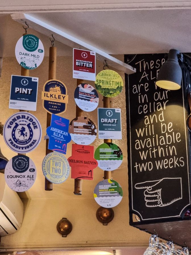 This fantasic pub was recommended by the bartender at Rifle Volunteers. It is a bit outside the city center so a good 15-minute walk, but worth every step on your step counter. The Flower Pot may have the best combination of local pub coziness and ambitious ale selection of the entire trip. When you see a British pub advertise “craft beer”, it usually means one or two unique ales on tap. Here, every ale is something you won’t easily find anywhere else. If I could transplant one pub during my trip to my own neighborhood, this might be the one.