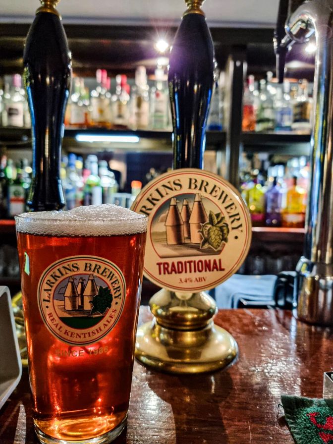 One common question I was asked several times was Do you like the beer here? When you look around the room in a British pub, you generally see people drinking international lagers. Peroni from Italy. Madri from Spain. Or Guinness. Lots and lots of Guinness. Ales and bitters seem to be for the traditionalists or someone like me who is seeking something local and different. Going to a pub in Belgium, I wouldn’t look twice at a beer offering 4% alcohol content. I want 8-9-10% in my Belgian beers. But in England, bitters and ales sit in the 3.6 to 4.2% range, sometimes creeping up to 5%. Yet, when I am there, all I want to drink are those. The answer to the question is complicated. I don’t find them all that tasty. But I crave them for that one week out of the year I get to experience them. They are one with the atmosphere of the pub. To me, inseparable. Yet, by the end of the trip, I would no doubt be considering them pig swill and looking forward to getting back to Westmalle Tripel. The good thing about 4% beers is no hangover in the morning. Tomorrow I would finally get to see the other Muggleton and its pubs. But it would take 21km and some mishaps along the way to get there. I would need every bit of that lack of hangover. So, with Day 1 in the books, the pubs of Maidstone did not disappoint. If for some reason you take a wrong turn to Canterbury and end up here, all is not lost.