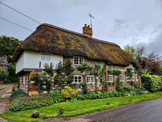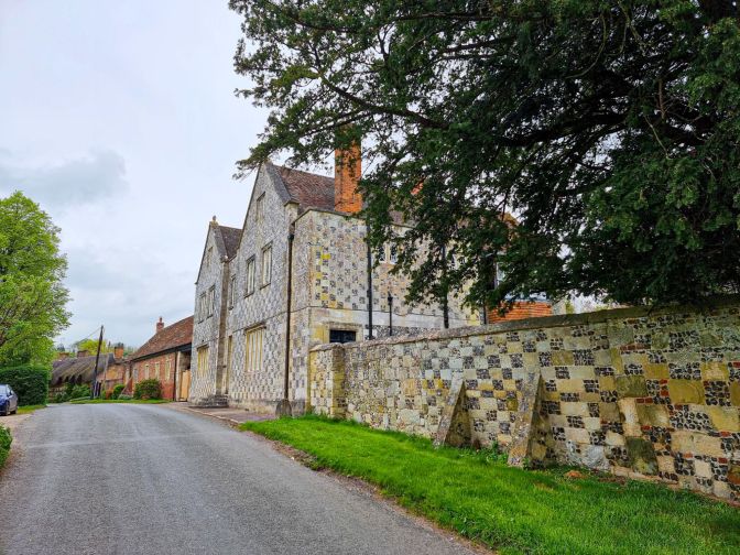 Arriving to Amesbury, one crosses into the semi-mythical world of Dickens Country. This part of Wiltshire including Salisbury was the key setting for the novel Martin Chuzzlewit. As usual, Dickens mixed real locations with imagined and the home of Mr. Pecksniff, an architect who takes in Martin as a pupil, is one of them. In The Real Dickens Land by H.Snowden and Catherine Ward (1904) they claim to have “located Mr. Pecksniff’s house on the road to Wilsford” but a few paragraphs earlier, the authors admitted that the house was one “we have selected for Mr. Pecksniff’s”. Wishful thinking but nevertheless fun. I wonder if the current owners even realize. You can find a poorly rendered scan of the photo provided in the book from the online version of The Real Dickens Land on page 156. This house like many structures including the churches are built predominantly from flint stone which you find all over the place in the Salisbury Plains.