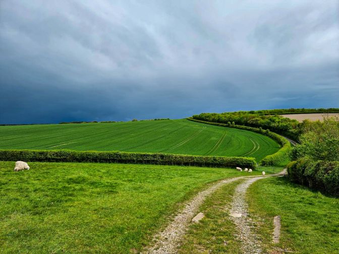 The hike follows some lonely but picturesque paths across the plains towards the village of Old Sarum (not to be mistaken for the historical site).