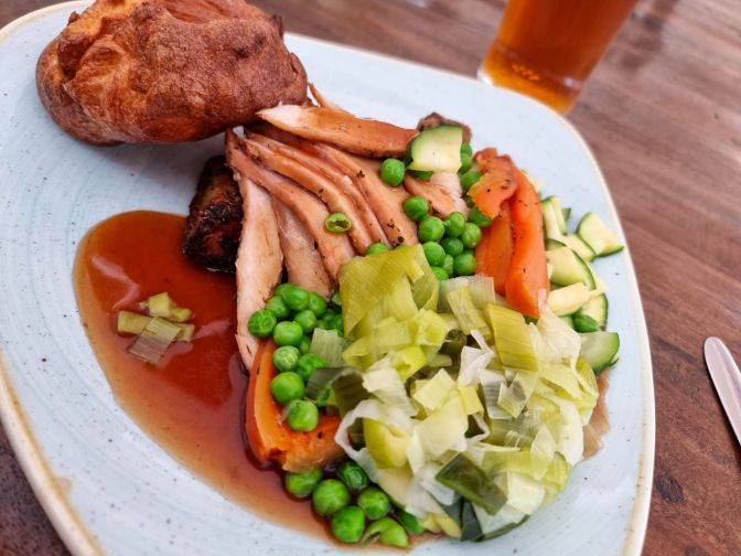 It was Sunday and a word of caution about these remote village pubs. Sunday is roast day for pubs. The Sunday roast means good hearty home-cooked style food, and the pubs get very busy. When I arrived, the restaurant was packed, and you could tell everybody knew everybody. Some were dressed in their Sunday best. The hostess seemed a bit annoyed that I showed up out of the blue without a reservation but fortunately could tell that I had come a long way by foot. She found a spot for me across the street in a tent they had set up to accommodate the crowds. If you are hiking on a Sunday, I would recommend making reservations.