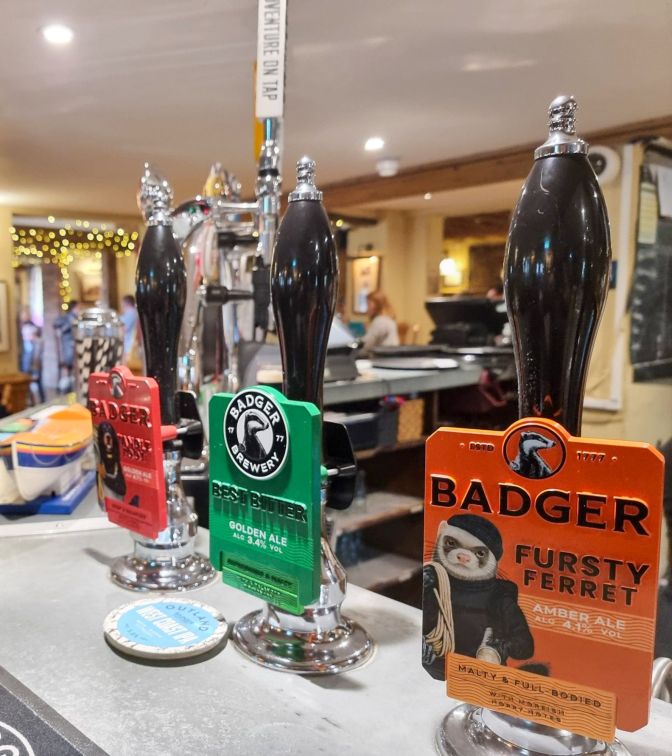 This beautiful inn looks small and cozy from the front, but has several rooms off to the back and is actually quite large. It was also buzzing from the Sunday roast crowd, but I was able to find a seat at the bar. I ordered their house lager. They had a whole row of taps from Badger Brewery which I wanted to try, but I still had quite a ways to go and the weather was constantly a threat.