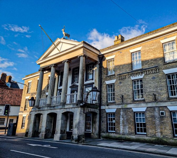 “A spirited account of the walk of Martin and Tom from Amesbury to Salisbury, ending at this inn (The White Hart), is given in Chapter XII.”