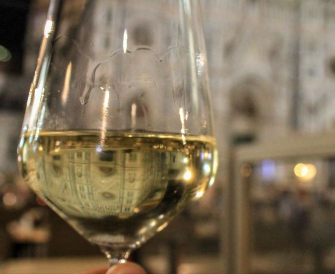 Brunelleschi’s Dome slightly visible thru a glass of wine