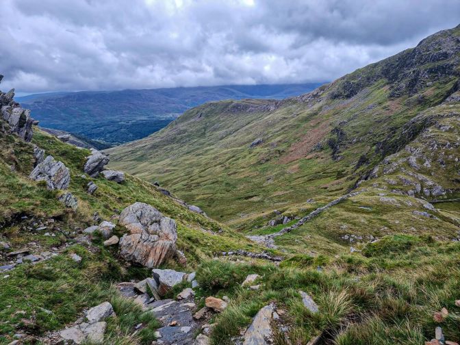 Initially the path follows Rhyd Ddu a couple hundred meters before branching south towards the Allt Maenderyn route.